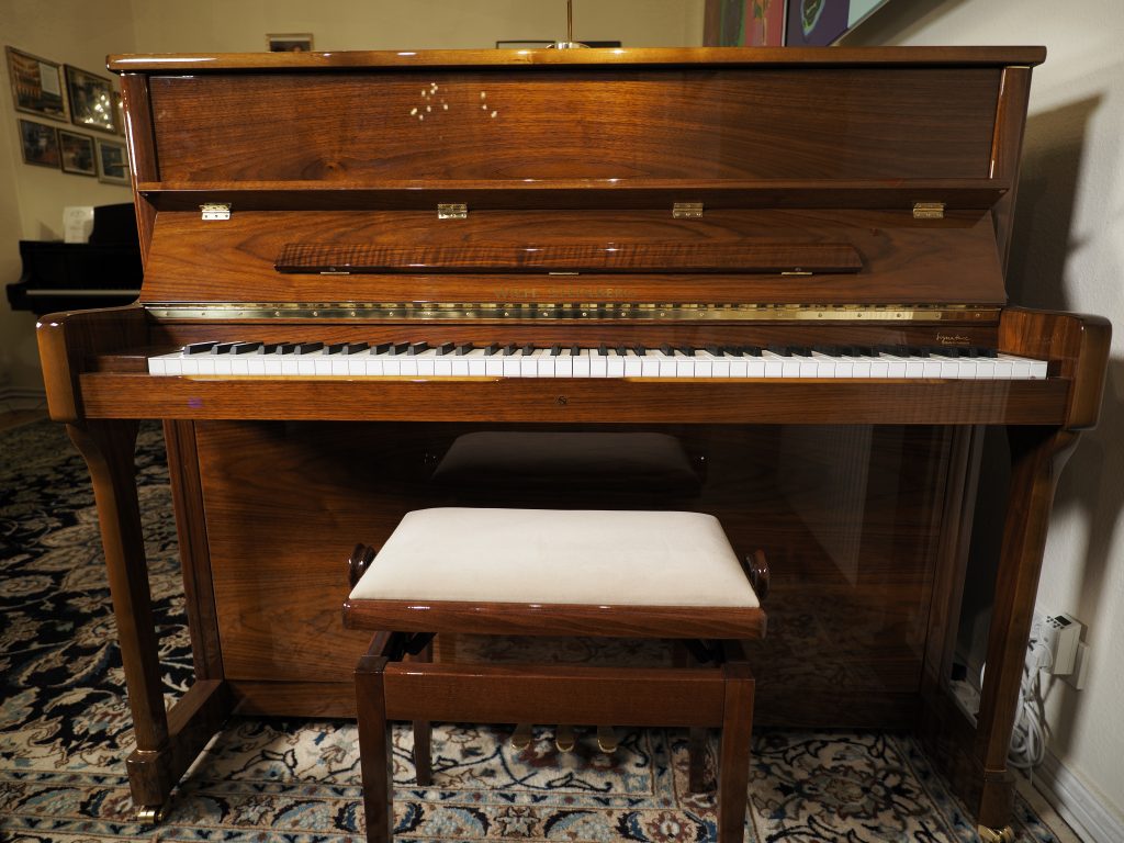 Mit seiner Standart Bauhöhe von 125 cm gehört unser Signature Line S-125 zu den beliebtesten Modellen. Die durchdachte Gehäusekonstruktion ermöglicht auch schon bei dieser Baugröße eine Spieltischhöhe von 70cm und bietet damit auch dem größeren Klavierspieler ausreichend Beinfreiheit.